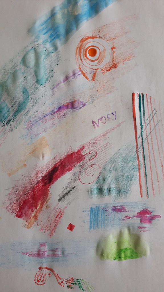 I knew that the real challenge would be using colours, because I hardly ever used them in the past. I didn’t know what to use first, so I tried with pastels then watercolour pencils