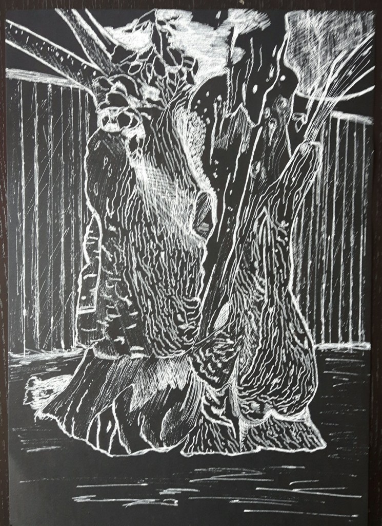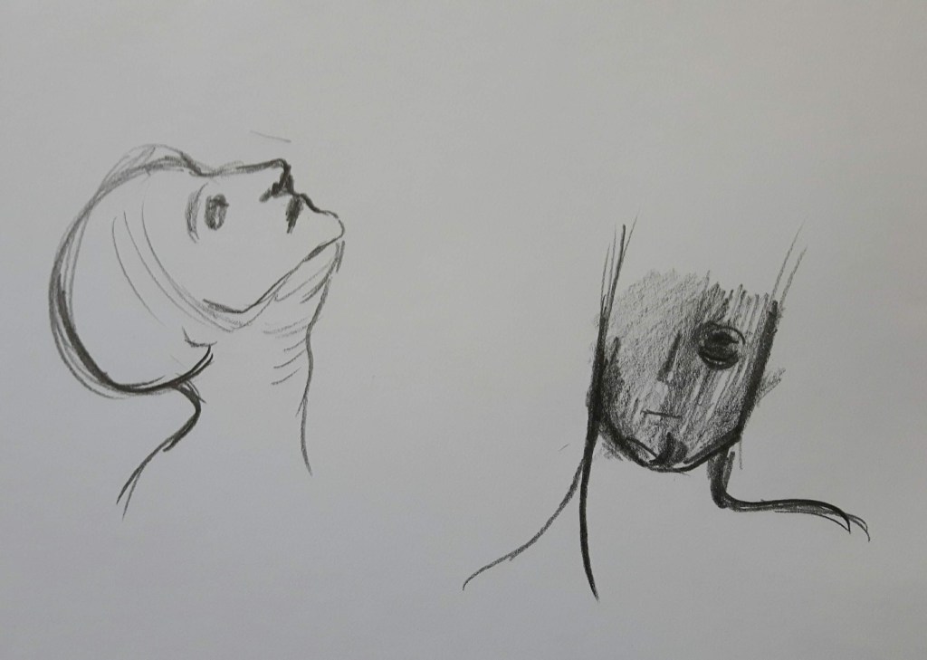 Quality of outcome: since I started to communicate my feelings and ideas I keep facing the fact that I do not always draw what I see, it’s rather what I think I see and that’s frustrating and overwhelming sometimes. I am not completely unhappy with this drawing – it taught me more- but it is still far from my intention.