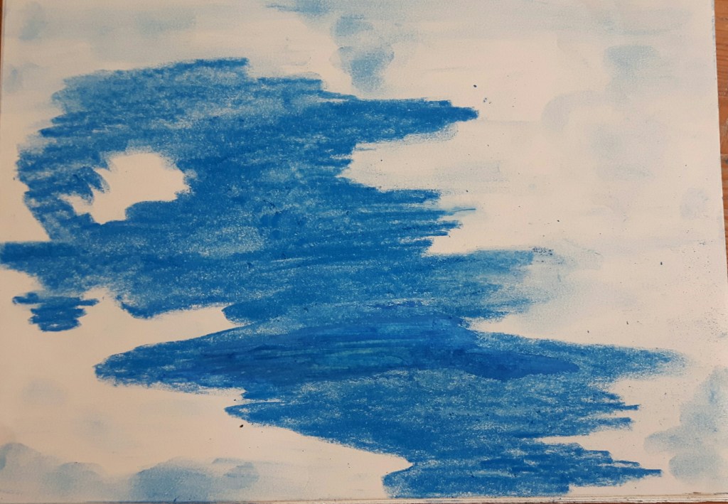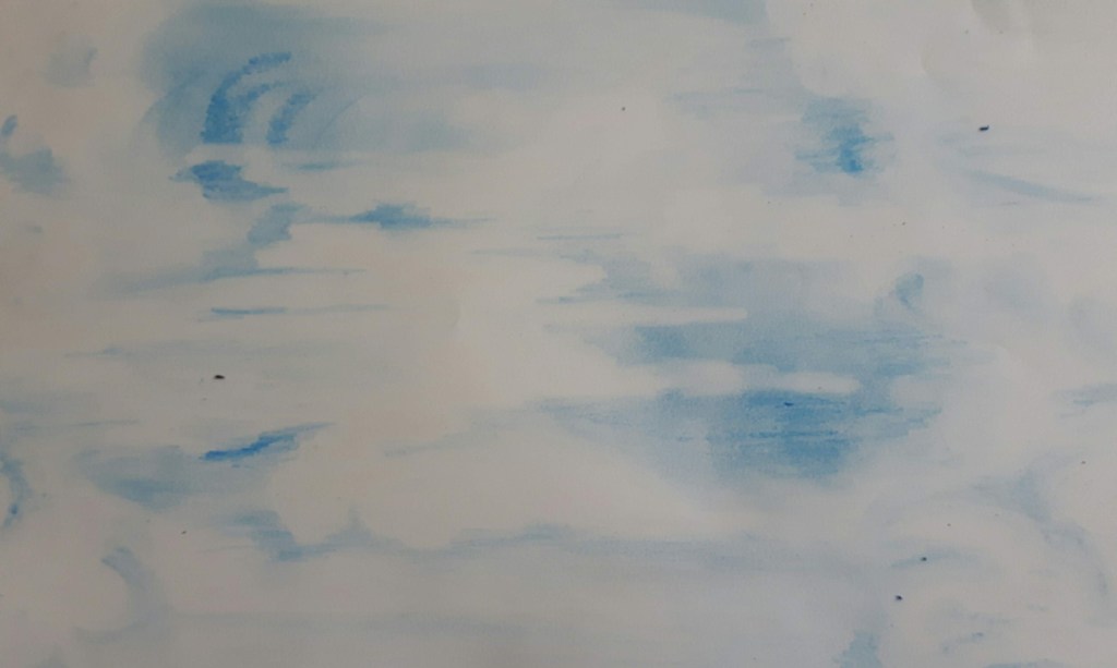 In this exercise I focus on drawing clouds using different tonal media. I used watercolours, crayons, oil pastels. After watching the video of Vija Celmins, I tried to capture the moment only, otherwise that exercise would have been a bit overwhelming.