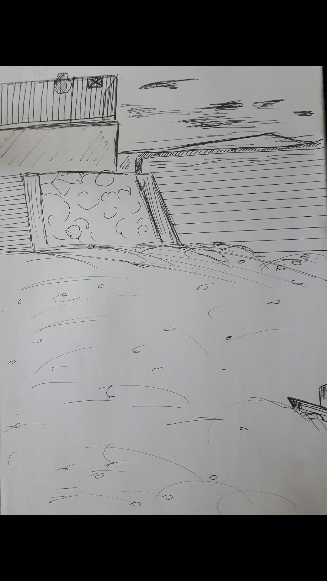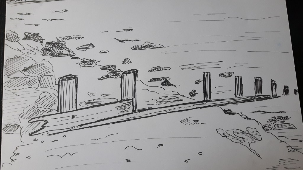 Choose an expansive landscape where you have an open view in all directions. I did this set of sketches when I went to the seaside. Though it seemed convenient and simple I think I struggled with that part the most.