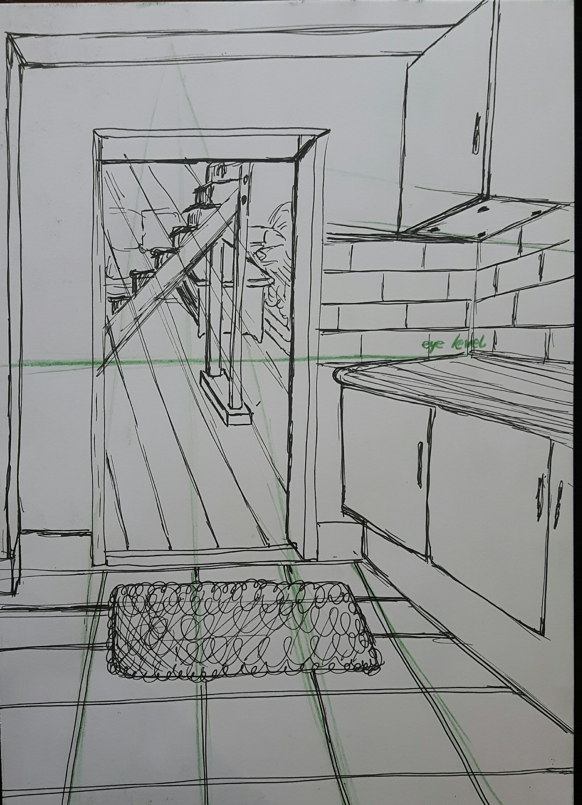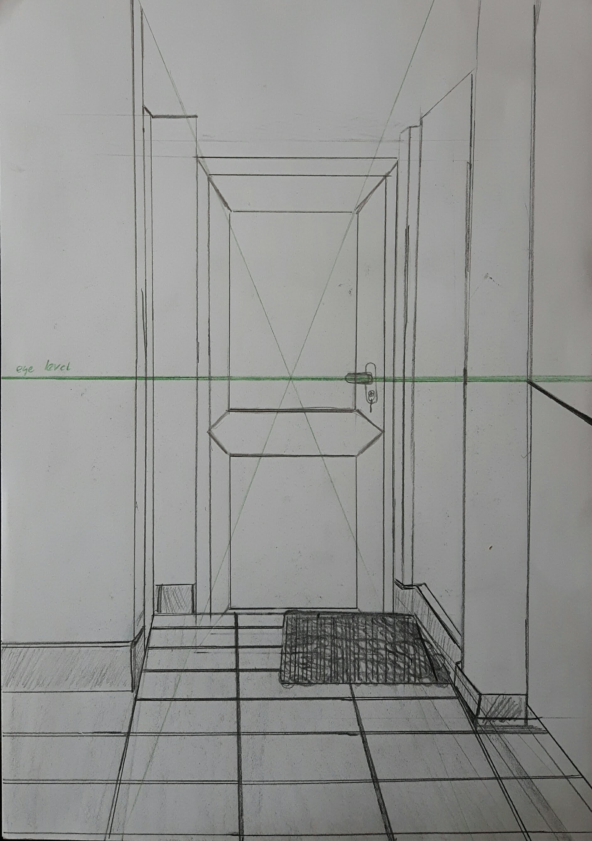 I used HB-3B pencils. After finishing this I read the exercise through again and found the line “don’t use a ruler or a rubber”….so there is the next one, with a different door.