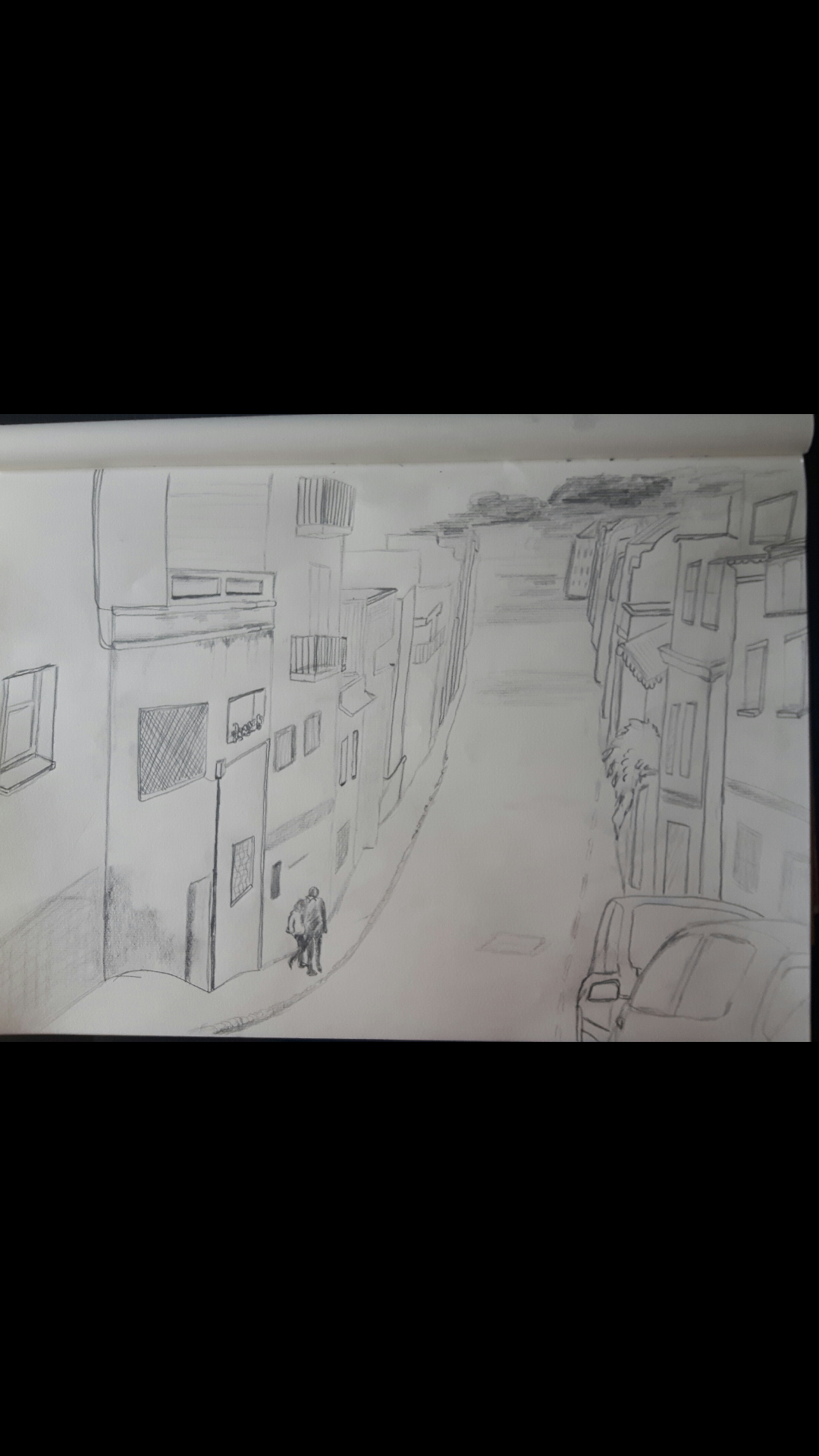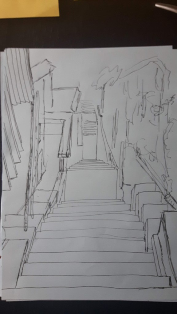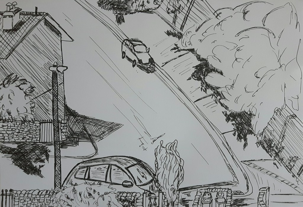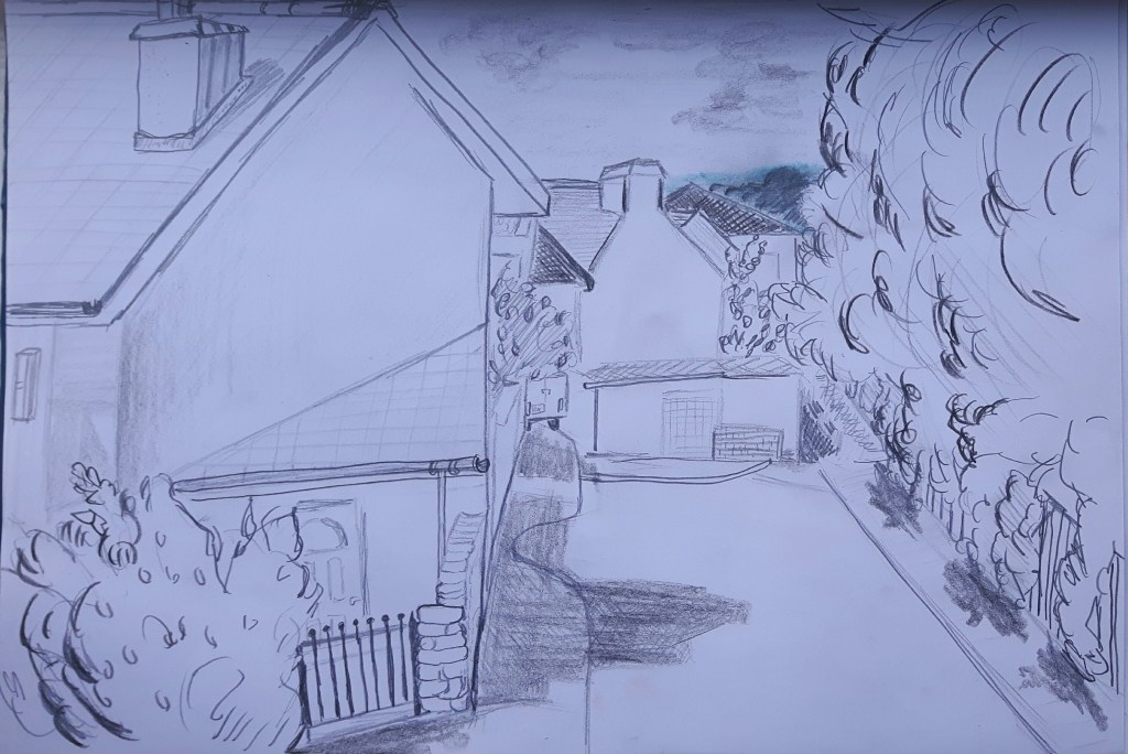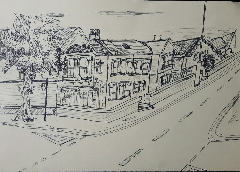 I think I haven’t got the perspective right on the second one, I should have used the house on the corner as a start point of a straight descending line for better proportion.