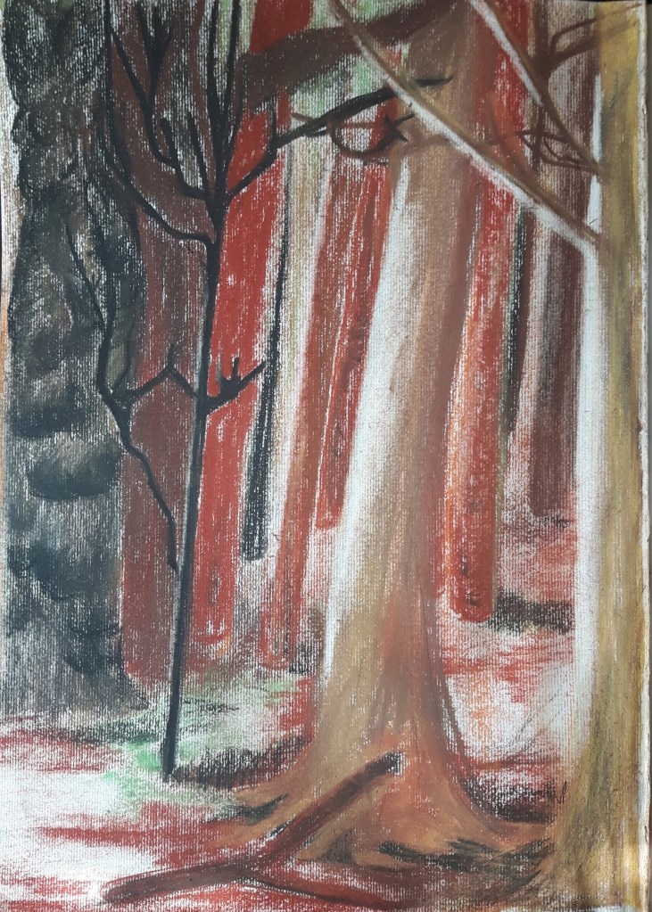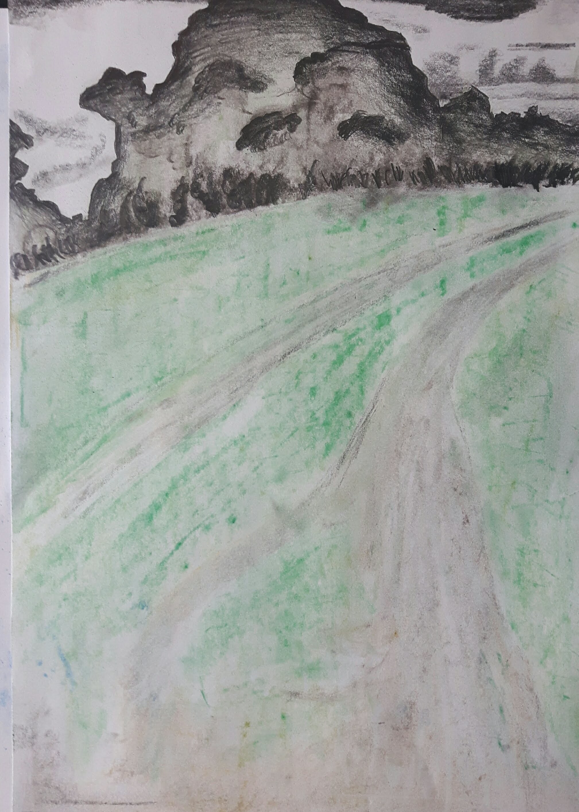 In this exercise I have to work on a group of trees focusing on perspective, lights and introducing colours. I mapped the contours with pencil then worked on it with hard pastel.