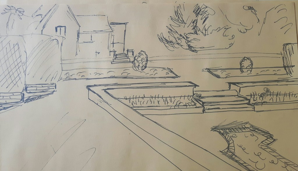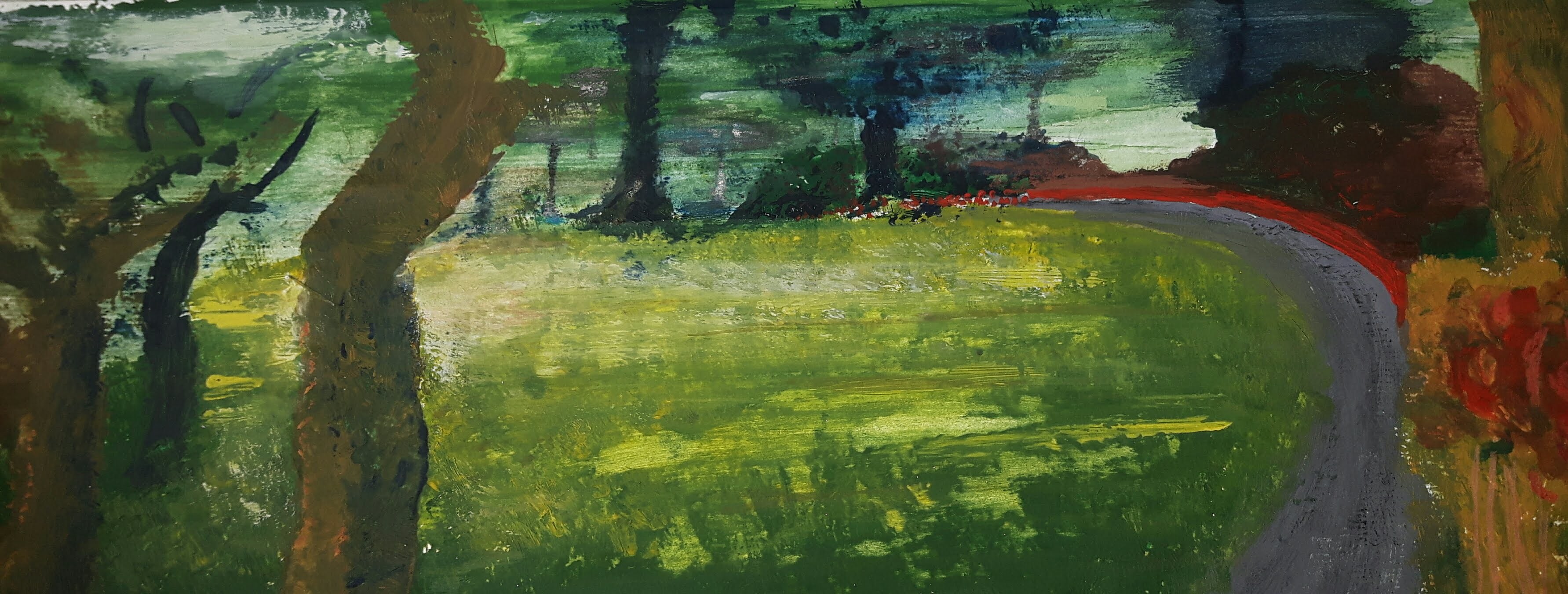I recently visited a beautiful park where I was stunned by the view so I used that experience for this exercise. The first drawing is a little cottage, the second one is a small road leading to a forest, the third one is another path in the park.