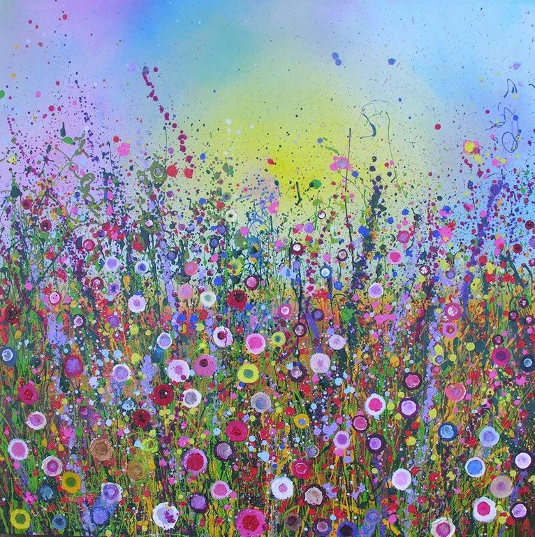 Coomber is a British abstract Landscape artist. She is best known for her Devon inspired magical English countryside Landscapes. She is using mixed media – such as glitter, gold, leaf, pigments and paint, working with sponges, fingers, paintbrushes to create a delicate and mystical atmosphere. According to the artist “…the result is a kaleidoscopic jewel like composition…”