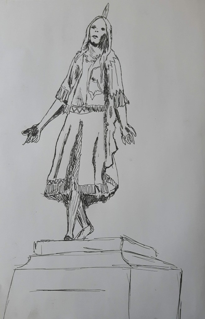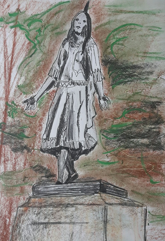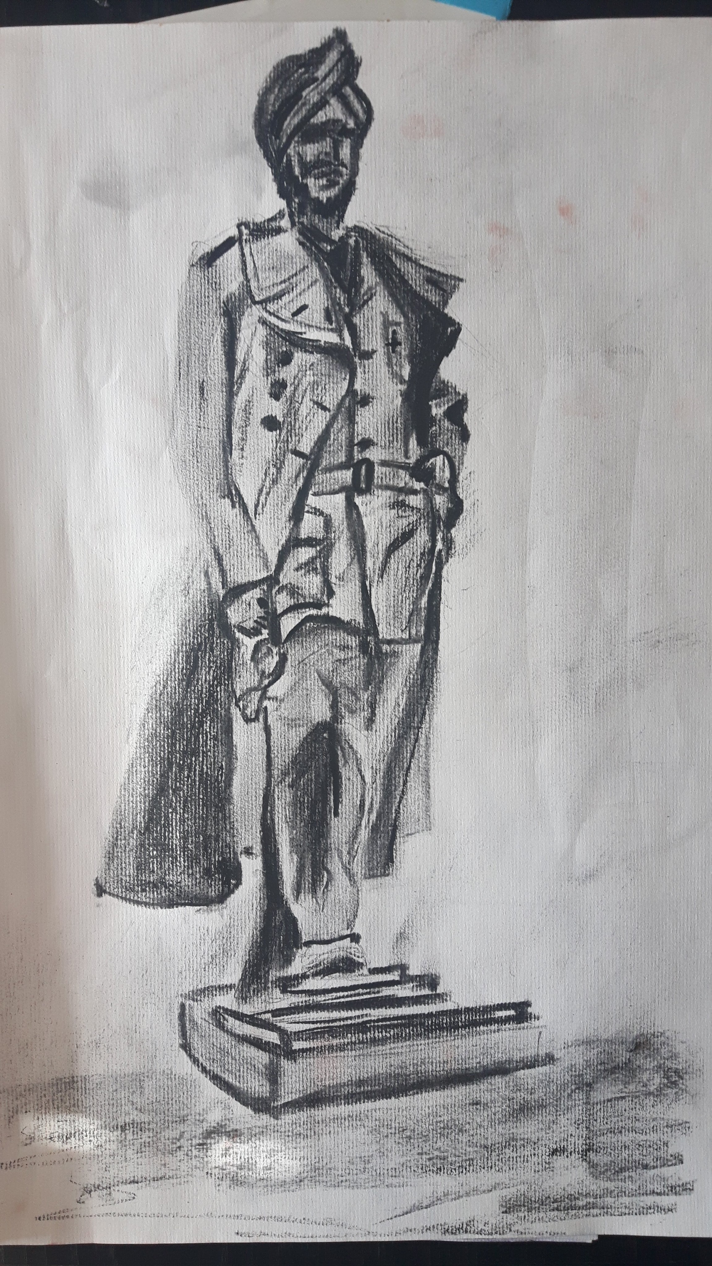 Even though I tried to concentrate on the folds of the clothing, it still went completely wrong and two-dimensional, desperately hanging in the air. I should have picked smooth medium for better blending. I tried to draw another famous person, Mahinder Singh Pujji, RAF fighter pilot who also died here, therefore a statue of him was erected in 2014.