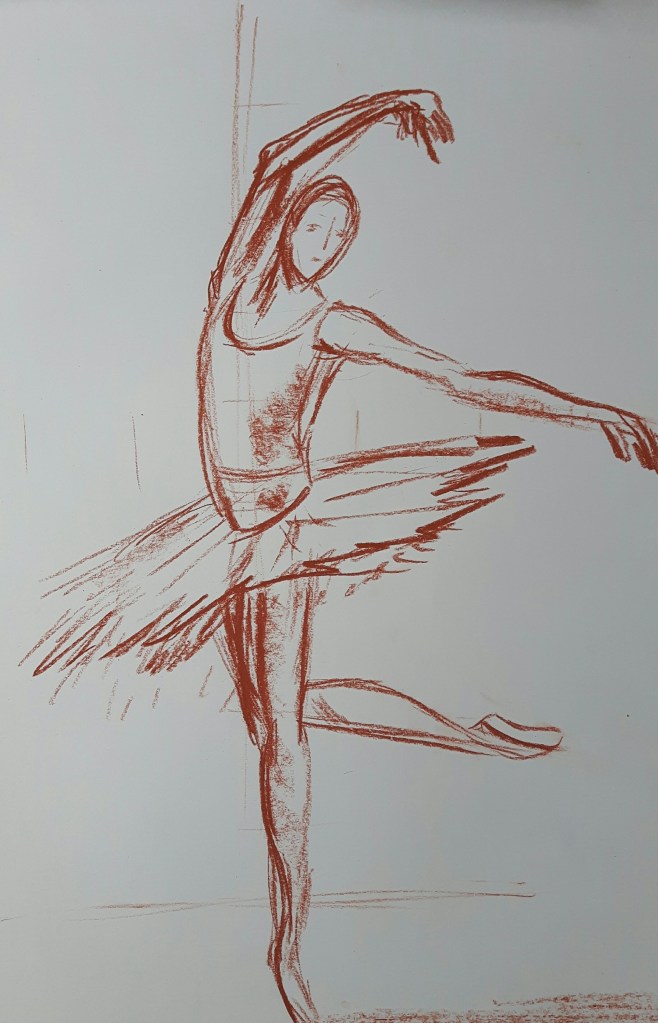 Those were quick sketches only, legs are not great but I think I have just grasped the endless passion of Edgar Degas for drawing dancers (approximately 1500 depictions…). I will definitely come back to this for a longer study.