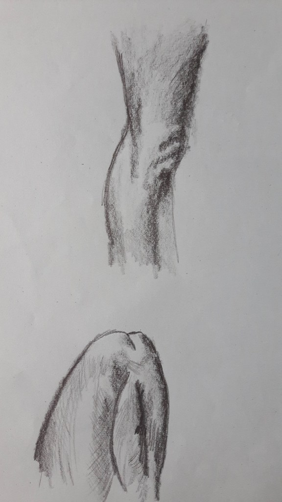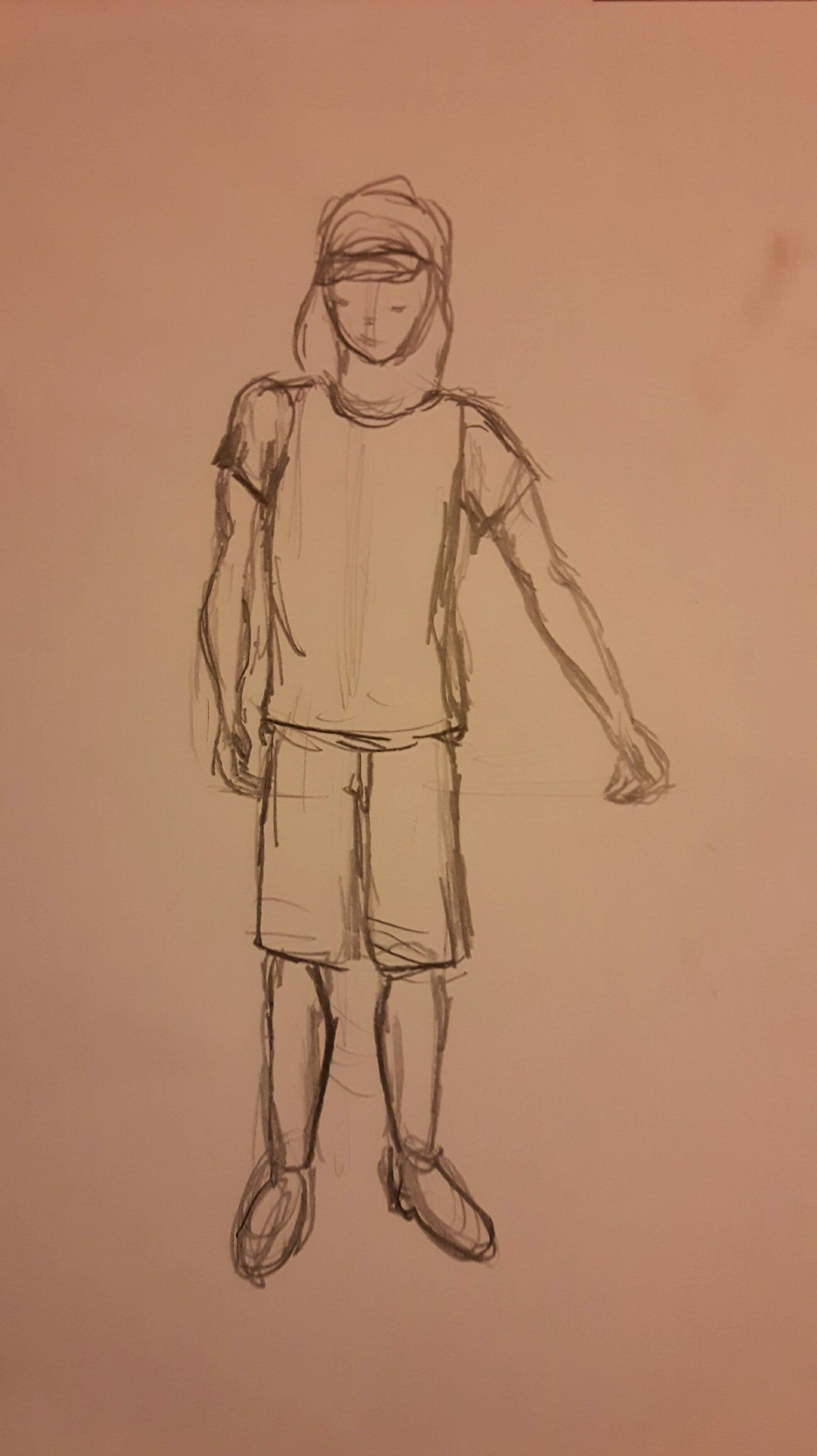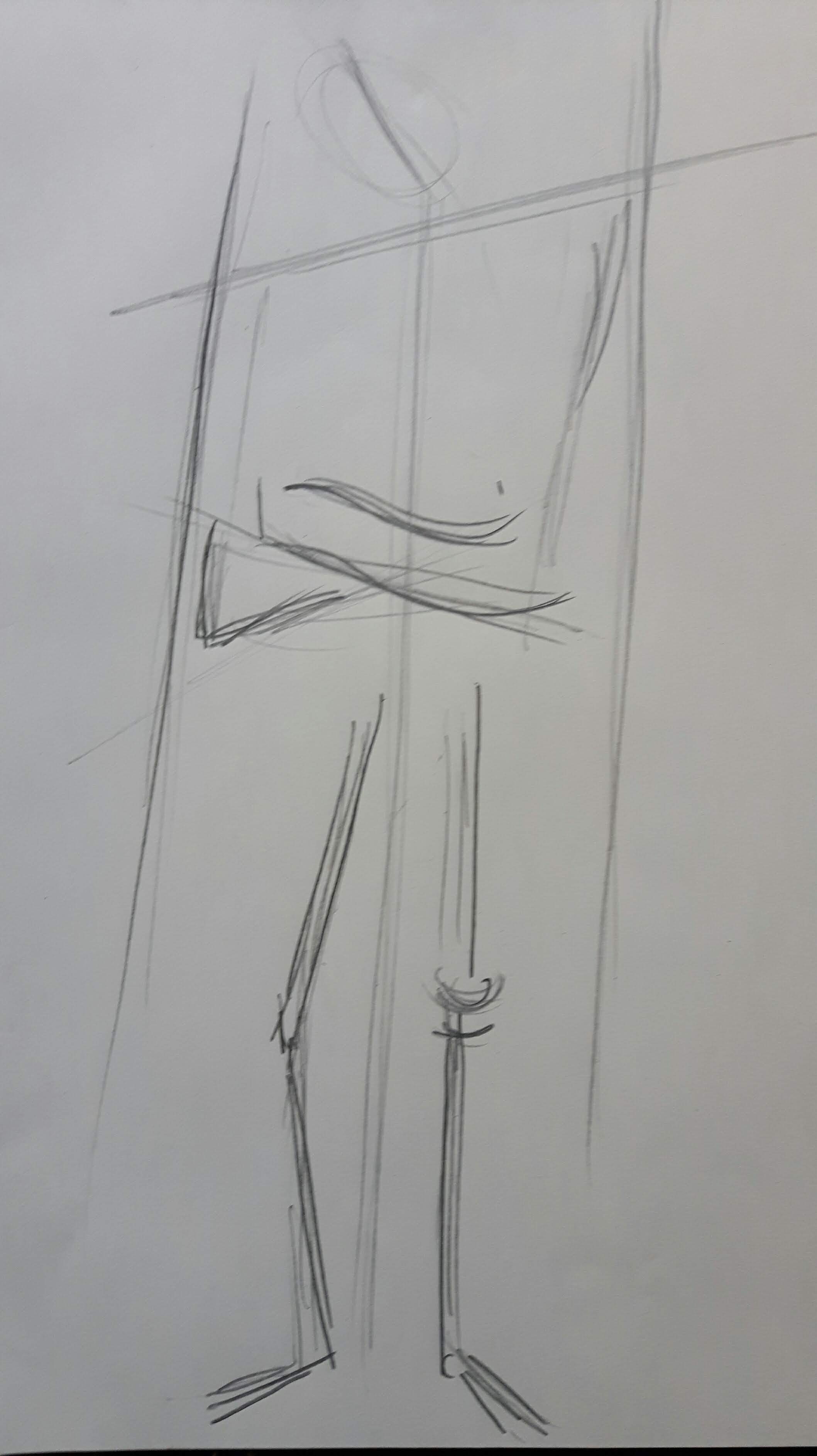 This is a twenty-minutes drawing. The head is too small and the torso looks unnaturally rectangular however the legs are not too bad.