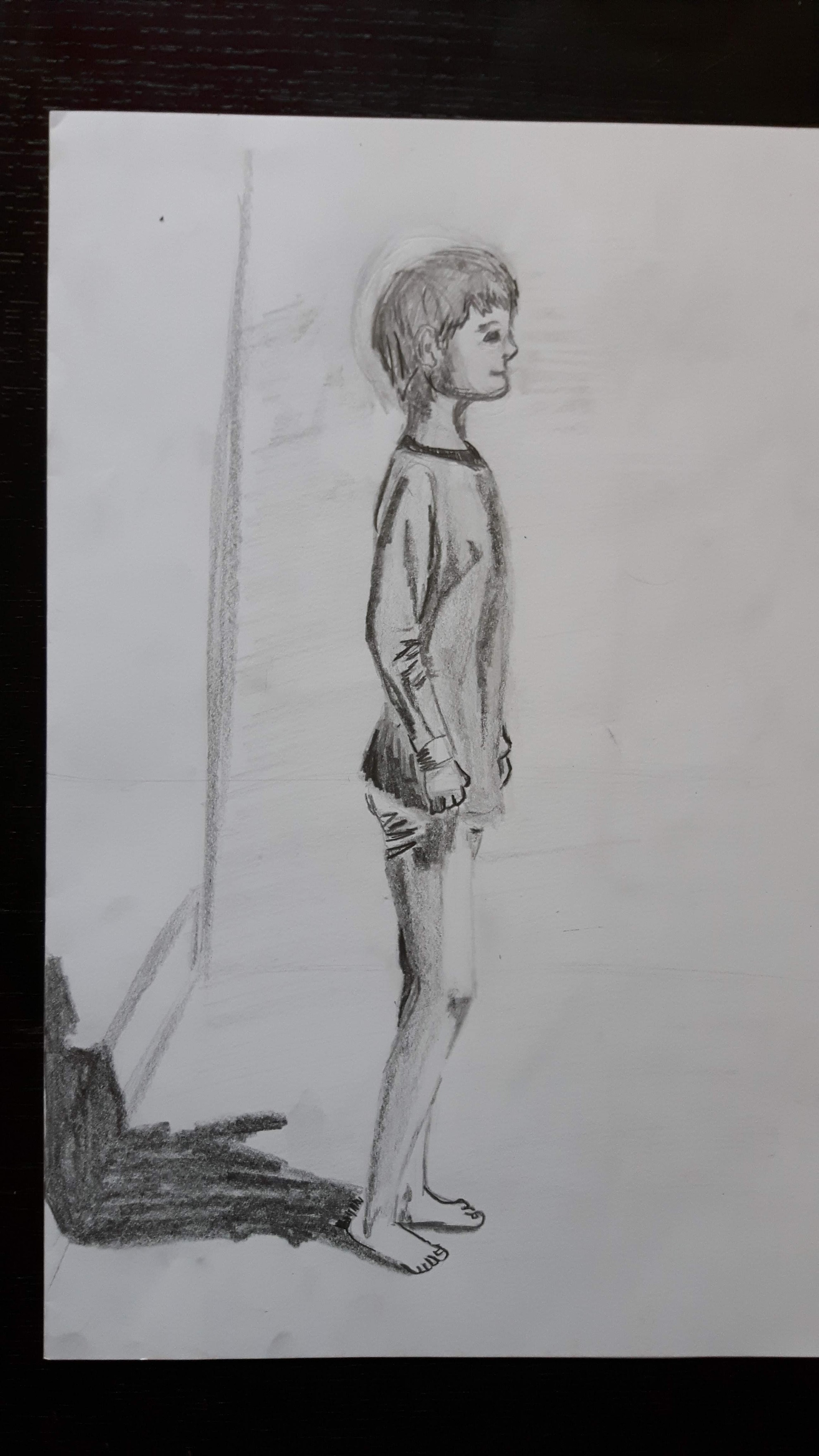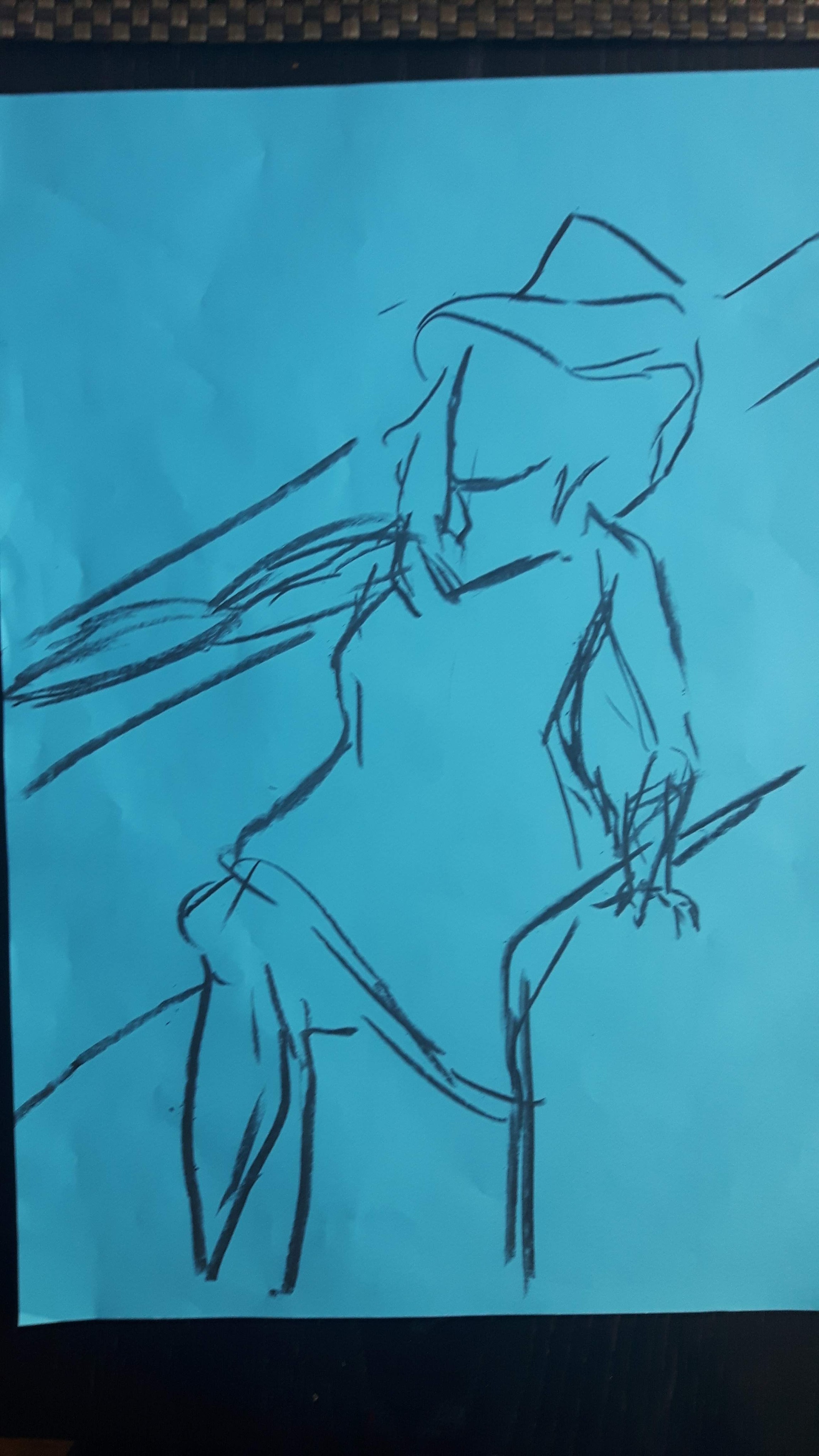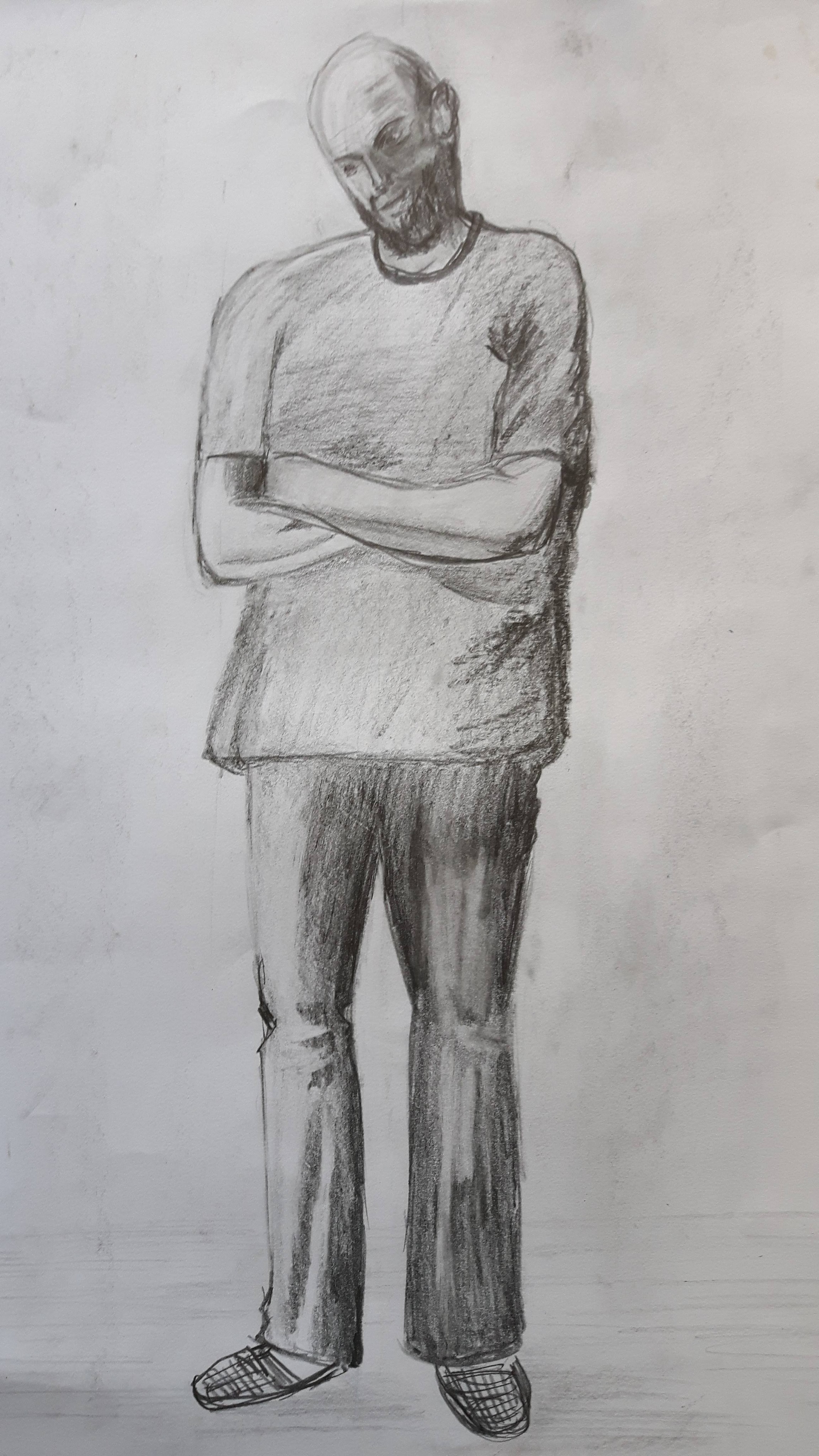 This is a twenty-minutes drawing. The head is too small and the torso looks unnaturally rectangular however the legs are not too bad.