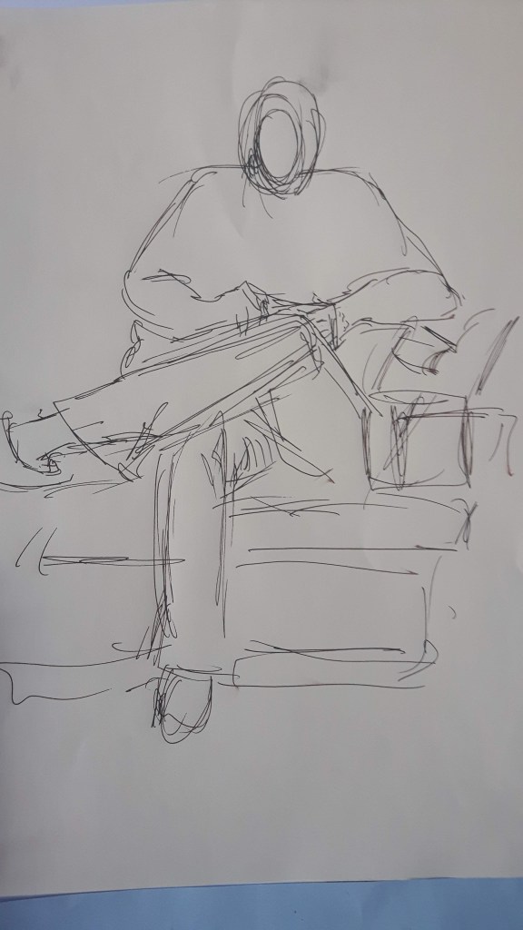 In this exercise I have to draw a model in a comfortable position. I chose a seated position for my model.