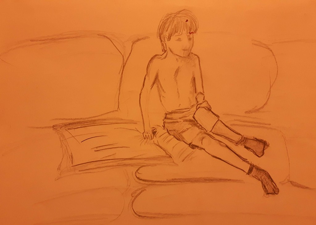 This time draw a sequence of six different poses lasting ten minutes each. I found a willing model – my son – but he wasn’t prepared to stay in pose for ten minutes each time. More like 2-5 and I finished them from my memory.