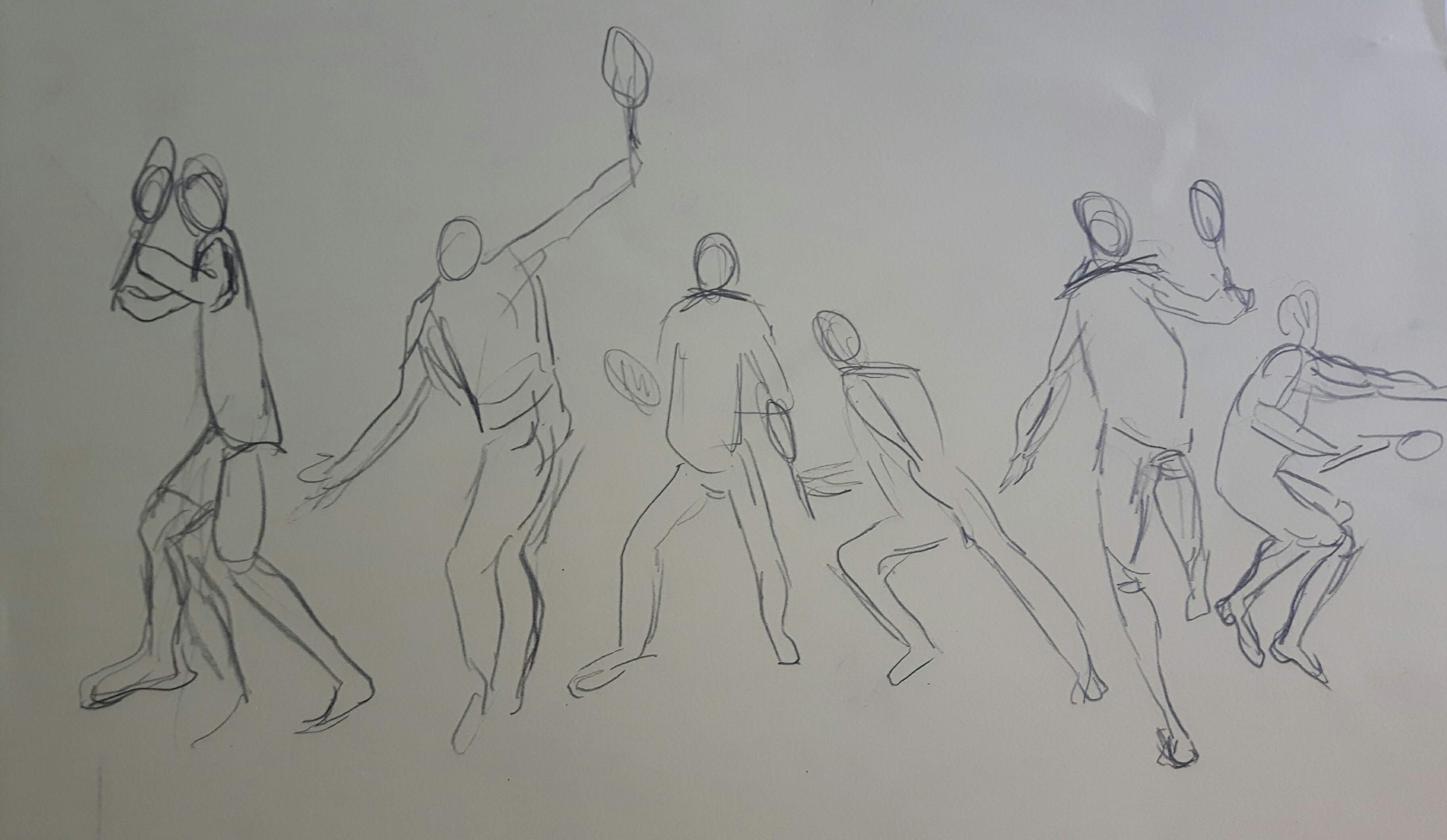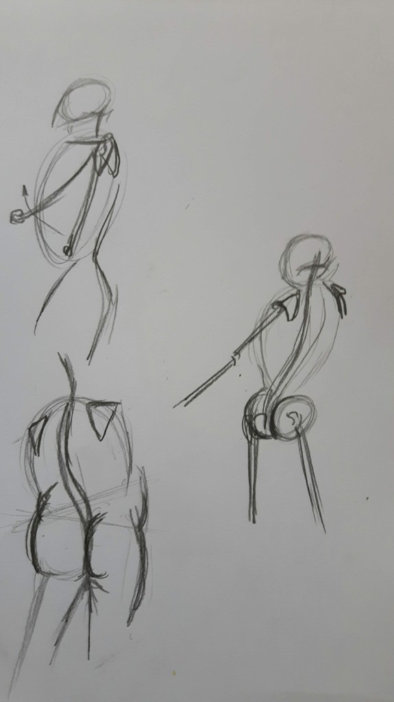 With my first sketches I tried to focus on the central axis and how the weight or mass are shifting with body movement.