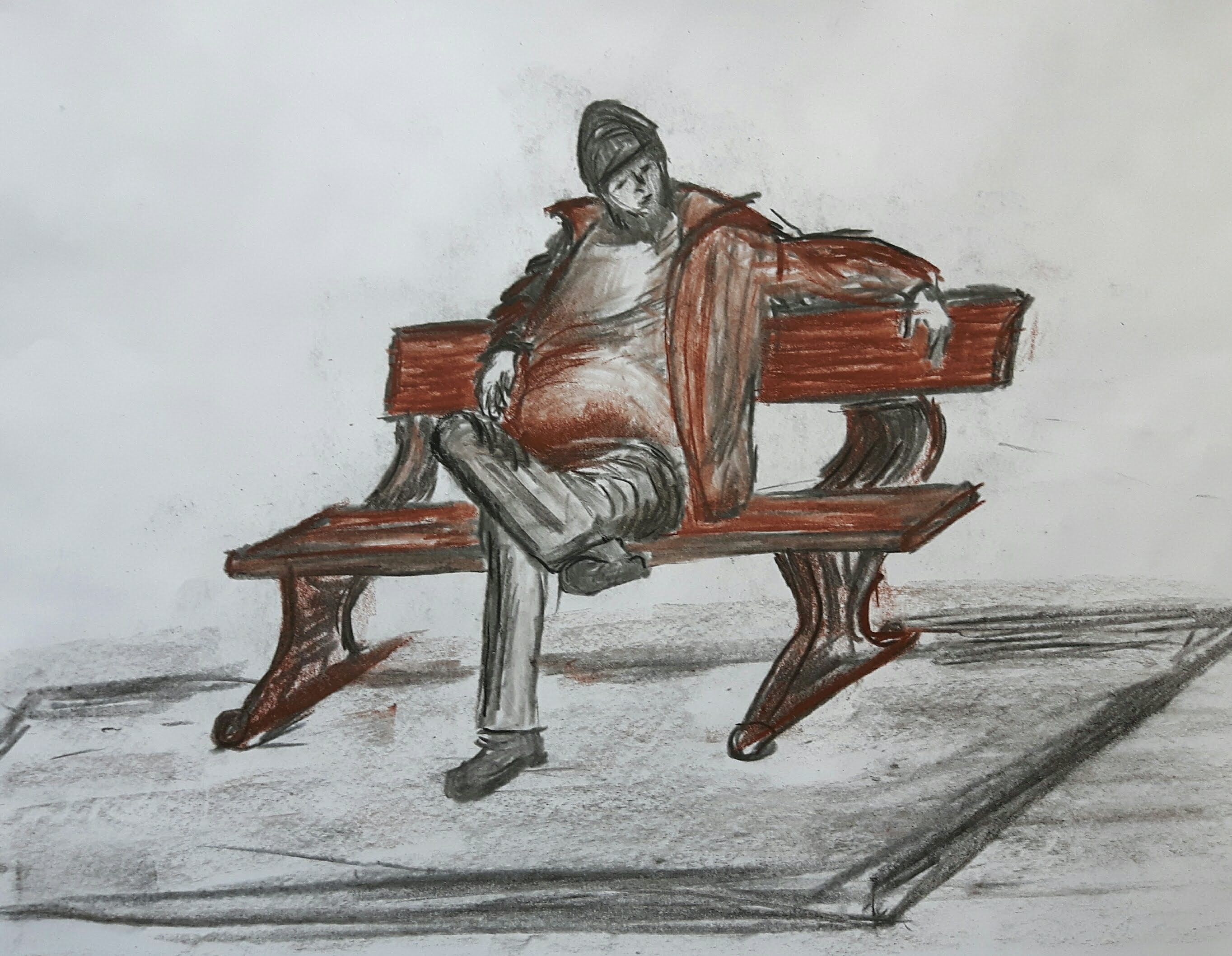 After reviewing my drawings I thought I would like to work on this drawing from the park.