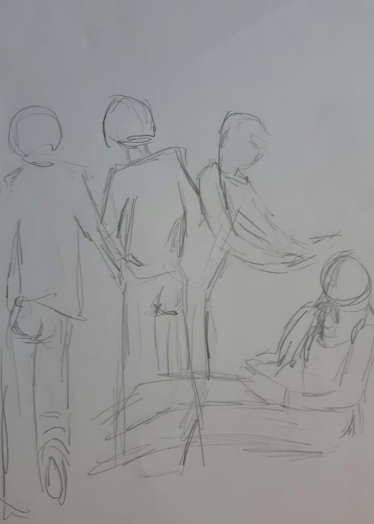 There are some sketches of the seated figure