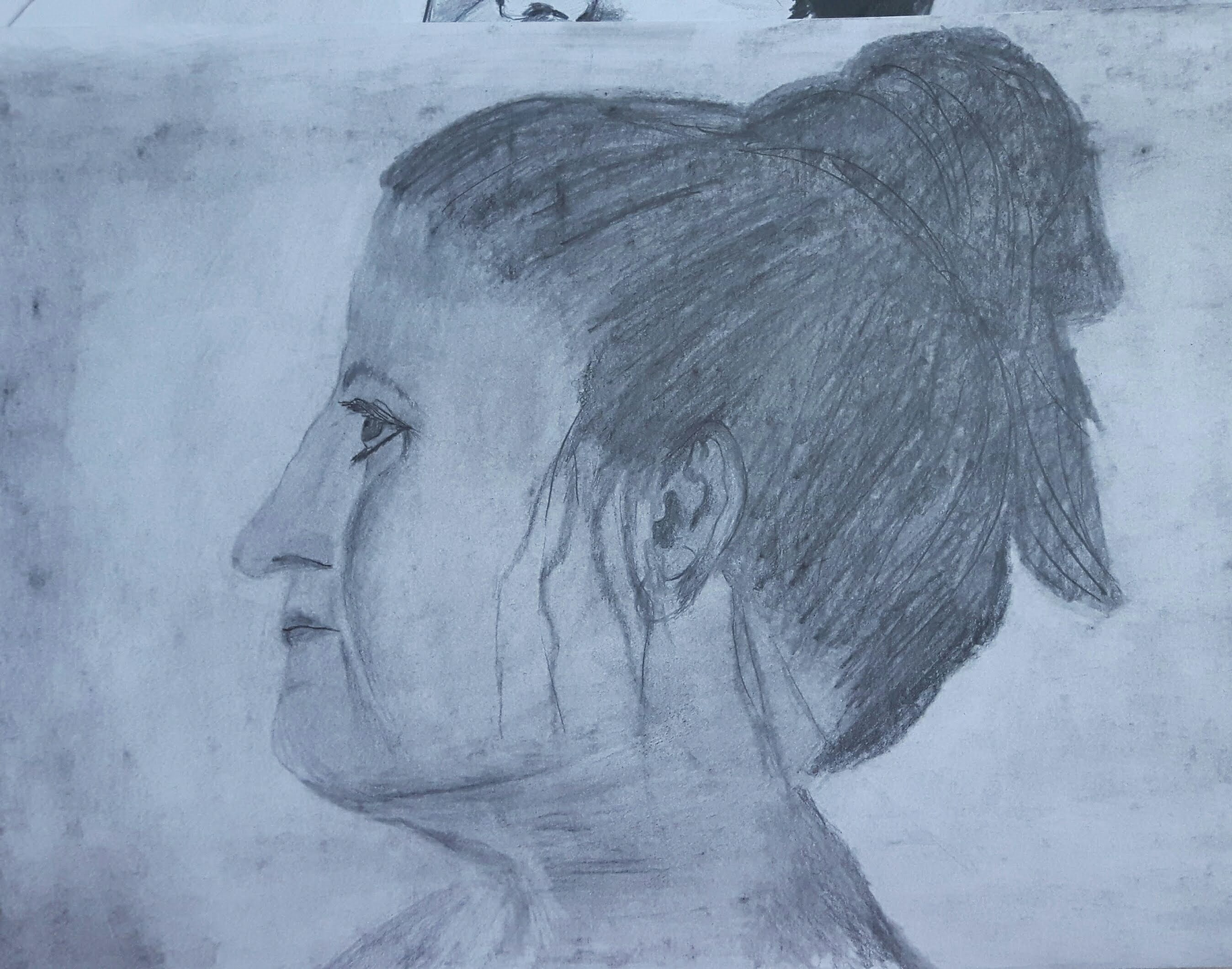 I could have worked more on tones especially with the shadows, also I left out the still life part on the table and it should have been there. However, I found the composition interesting and expressive.