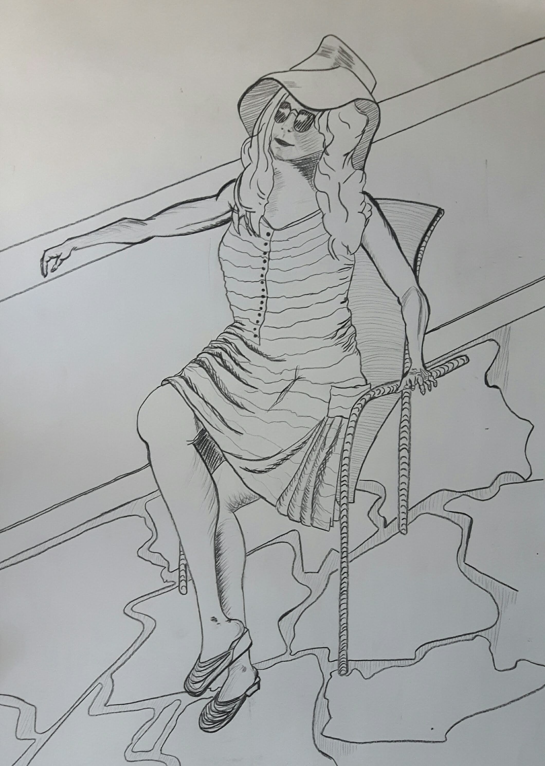 My first drawing is me, sitting on the balcony of a holiday apartman last summer. I was gonna use brush pen first because I wanted the image crisp and simple but then I decided to use Black Inktense which lately became my favourite medium. I started the very first sketch with charcoal though, just to see the difference.
