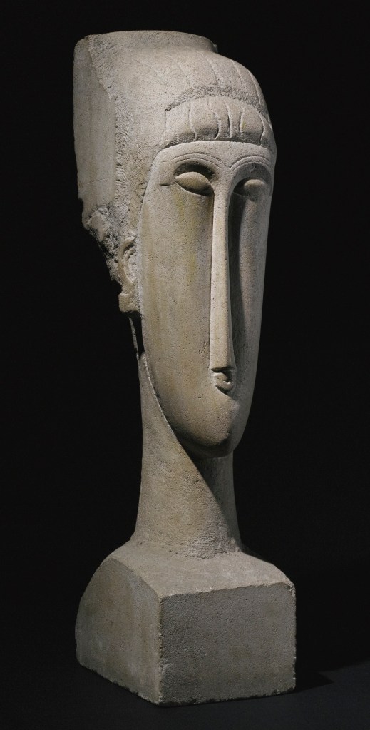 Amadeo Modigliani was an Italian sculptor and painter is known for portraits with elongated faces and figures. Influenced by African sculpture he created stone heads with elongated and simplified forms. Those unmistakable characteristics became typical on his paintings later on.
