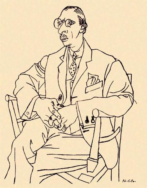 Those two drawings were created by Pablo Picasso. The first is Igor Stravinsky, the second one is Erik Satie. The drawings are very similar, both model were seated on the same chair. The beauty is in their seeming simplicity: he used quick, single strokes.