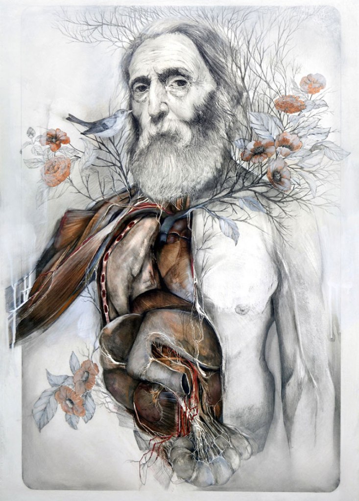 Nunzio Paci is a contemporary artist from also Italy. I am truly fascinated by the astonishing combination of anatomy and nature in his art. His anatomical studies are clearly leading us back to Da Vinci’s drawings. According to the artist “my intention is to explore the infinite possibilities of life in search of a balance between reality and imagination.”